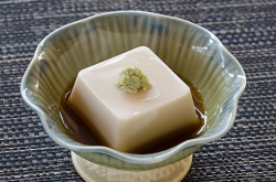 ごま豆腐は、頻繁に日本のお寺で食べられる菜食だけの食事(精進料理法)の一部です。